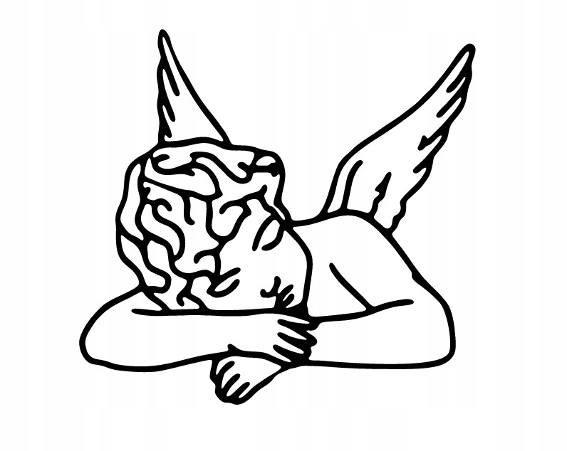 Dekoracja przedstawia anioła o spokojnej, melancholijnej pozie. Skrzydła są lekko uniesione, a głowa spoczywa na złożonych ramionach, co nadaje całości delikatny i refleksyjny charakter. Linie są miękkie i płynne, podkreślając subtelność oraz symboliczny, duchowy wymiar przedstawienia.