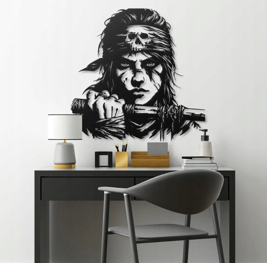 Motyw symbolizuje odwagę, wolność i wewnętrzną siłę. To dekoracja dla osób, które cenią niezależność, mocny charakter i ducha walki. Idealnie wpisze się w przestrzenie o mroczniejszym, industrialnym lub przygodowym klimacie, stając się wyrazistym punktem wnętrza. To połączenie ekspresji i symboliki, które inspiruje do nieustannego dążenia naprzód – bez lęku i kompromisów.