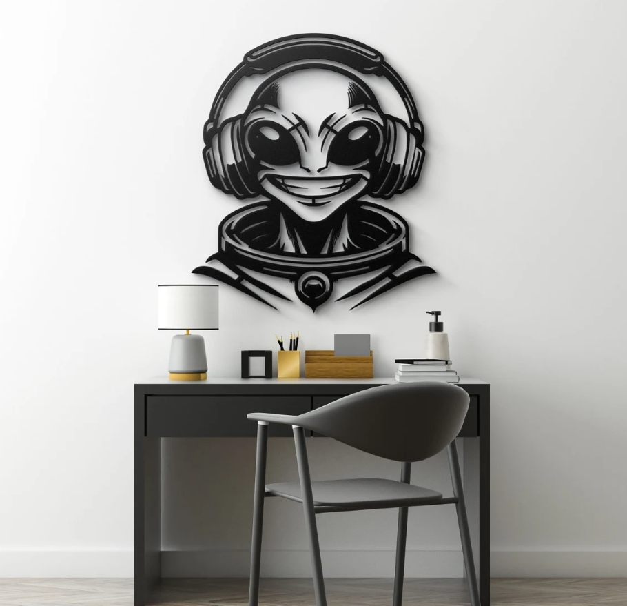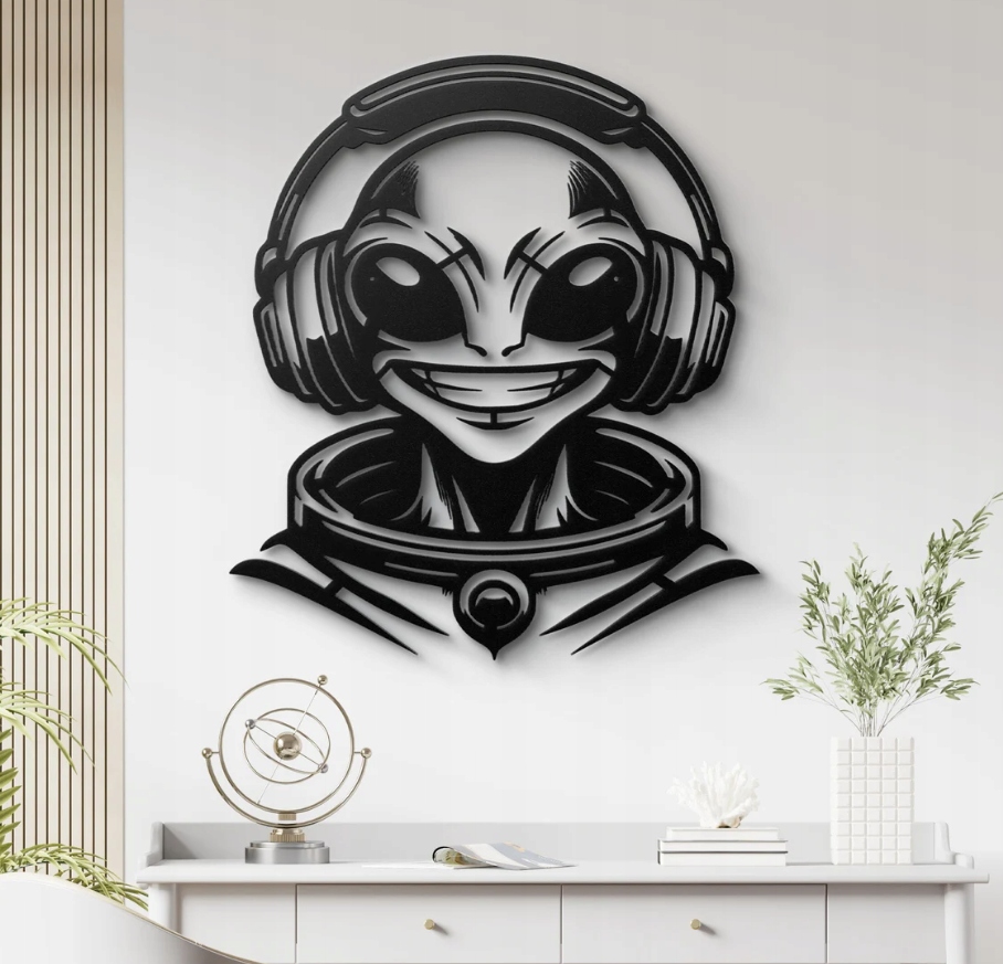 Taka dekoracja świetnie pasuje do wnętrz utrzymanych w stylu industrialnym, młodzieżowym lub pop-artowym. Może symbolizować otwartość na nowe technologie, muzykę czy kulturę science fiction. Jej pozytywna energia i futurystyczny klimat sprawiają, że idealnie uzupełni przestrzeń kreatywną, studio muzyczne lub pokój miłośnika nowoczesnych motywów.