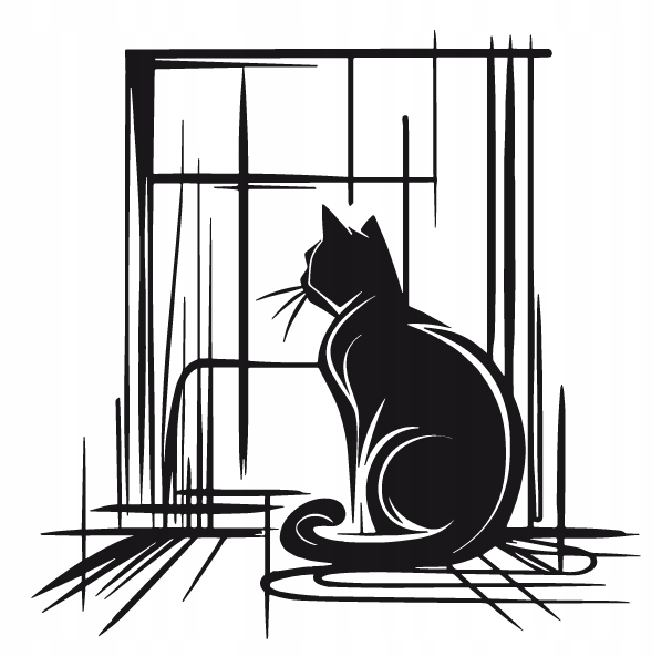 Dekoracja przedstawia kota siedzącego przy oknie, utrzymana w nowoczesnym, linearnym stylu. Smukłe, geometryczne linie tworzą wrażenie lekkości i harmonii, a delikatne kontury zwierzęcia podkreślają jego spokój i skupienie. Całość emanuje ciszą i melancholią chwili, jakby kot zamyślił się, obserwując świat zza szyby.