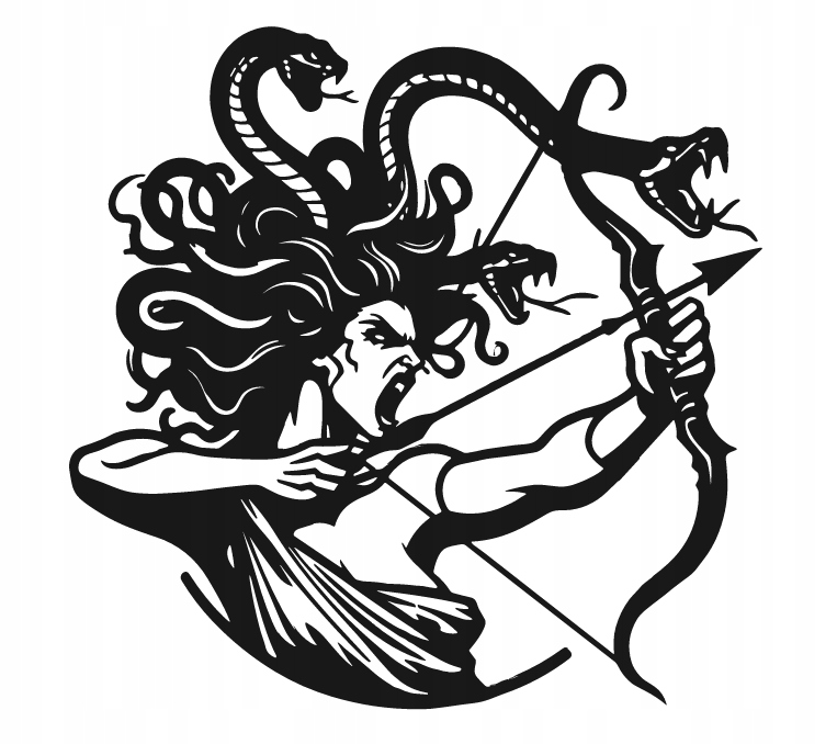 Dekoracja przedstawia postać kobiety o twarzy pełnej gniewu i determinacji, która napina łuk, celując strzałą w przeciwnika. Jej włosy zastąpione są wijącymi się jadowitymi wężami, co jednoznacznie wskazuje na inspirację mitologiczną postacią Meduzy.