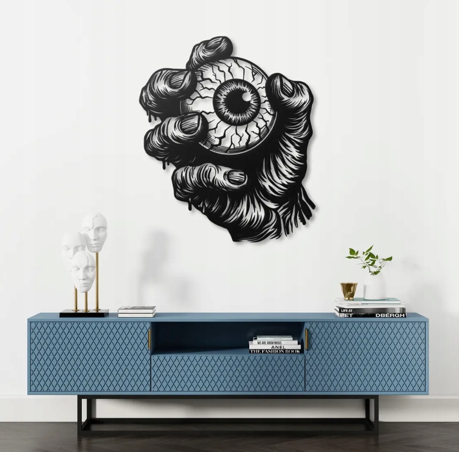 Motyw symbolizuje czujność, tajemnicę i nieustanne obserwowanie świata z innej perspektywy. To dekoracja idealna dla osób ceniących mocne, ekspresyjne formy i klimat mrocznej sztuki. Doskonale sprawdzi się jako wyrazisty element wystroju w industrialnych, alternatywnych wnętrzach, dodając im charakteru, tajemniczości i artystycznego wyrazu.