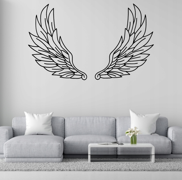 Motyw skrzydeł doskonale sprawdzi się jako ozdoba wnętrza w stylu nowoczesnym lub minimalistycznym, dodając mu harmonii i przestronności. Może pełnić funkcję delikatnego akcentu symbolicznego, wprowadzając atmosferę spokoju i równowagi. W prostocie tej kompozycji kryje się lekkość i uniwersalność, które czynią ją ponadczasową dekoracją.