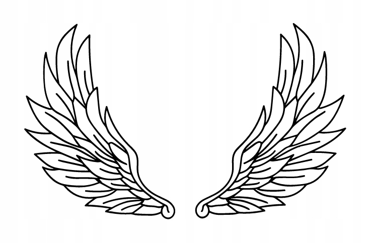 Dekoracja przedstawia parę stylizowanych skrzydeł o delikatnym, symetrycznym układzie. Każde z nich zostało opracowane z dbałością o szczegół, z wyraźnym zarysem piór układających się w lekkim, płynnym rytmie. Prosty, liniowy rysunek nadaje wzorowi elegancji i subtelności, a jego forma nawiązuje do symboliki wolności, lekkości oraz duchowości.