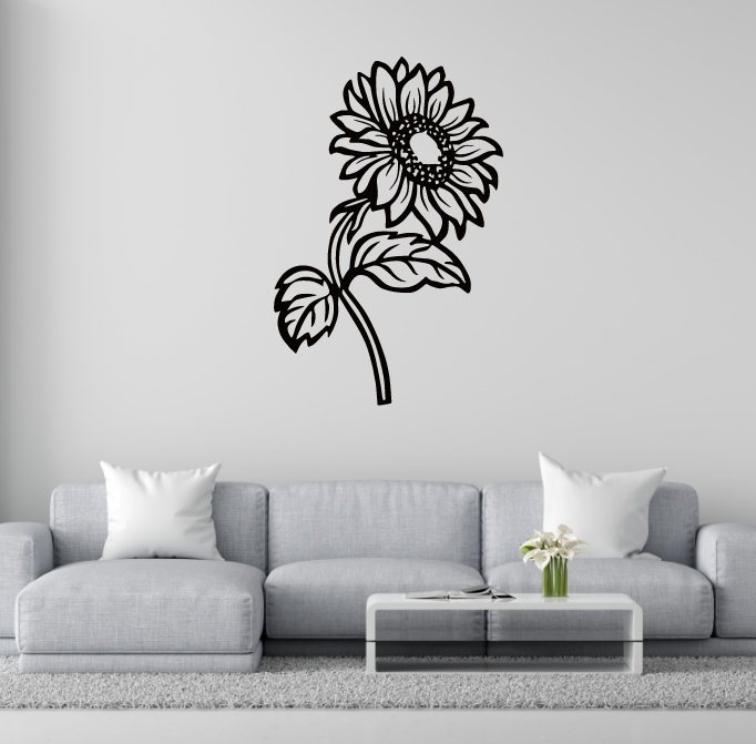 Całość narysowana jest grubymi, kontrastowymi liniami, które dodają wyrazistości i podkreślają strukturę rośliny. Kompozycja jest prosta, ale elegancka, a słonecznik sprawia wrażenie symbolu energii, światła i pogody ducha.