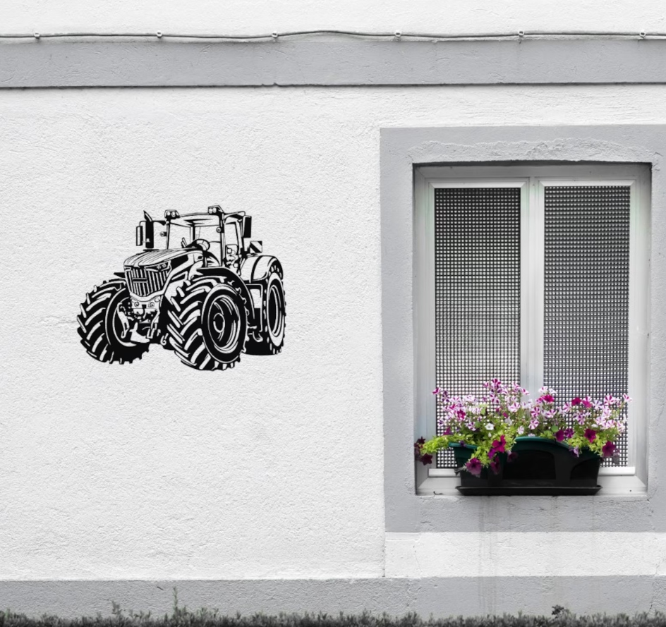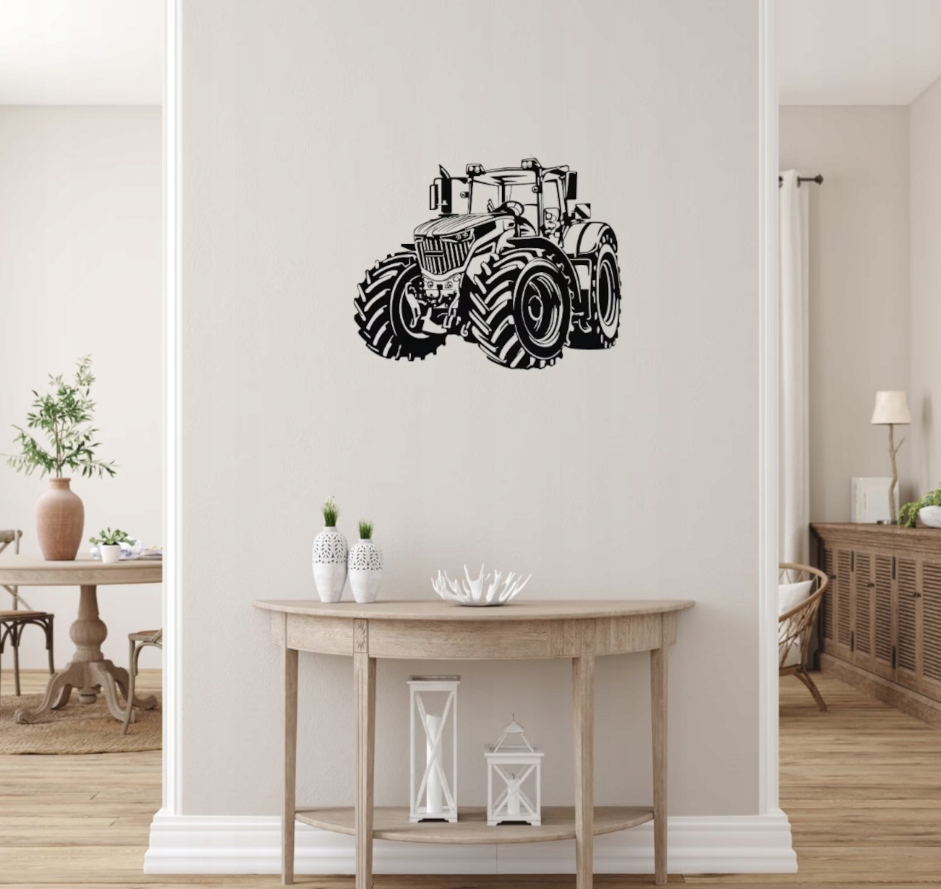Rysunek oddaje moc i niezawodność pojazdu rolniczego, podkreślając jego znaczenie w pracy na polu. Tego typu wzór doskonale sprawdzi się jako projekt dekoracyjny, nadruk lub motyw do wycinania w metalu bądź drewnie, symbolizując siłę i nowoczesność rolnictwa.