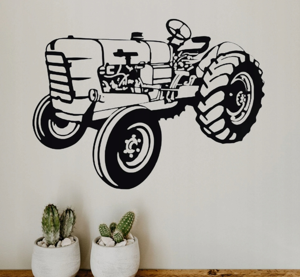 Tego rodzaju traktor był podstawowym narzędziem pracy na polach, służącym do orki, transportu i innych zadań związanych z uprawą ziemi. Prosta, solidna budowa pokazuje, że była to maszyna niezawodna i odporna na trudne warunki pracy. Grafika oddaje ducha dawnej wsi, gdzie takie pojazdy były symbolem ciężkiej, ale potrzebnej pracy rolników.