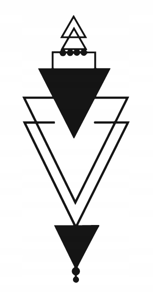 Kompozycja opiera się na harmonijnym układzie trójkątów i linii, które tworzą symetryczną, geometryczną formę o eleganckiej prostocie. Czarne i puste przestrzenie równoważą się, nadając wzorowi poczucie stabilności i rytmu. Delikatne detale w postaci kółek i cienkich linii przełamują surowość kształtów, wprowadzając subtelną dynamikę.