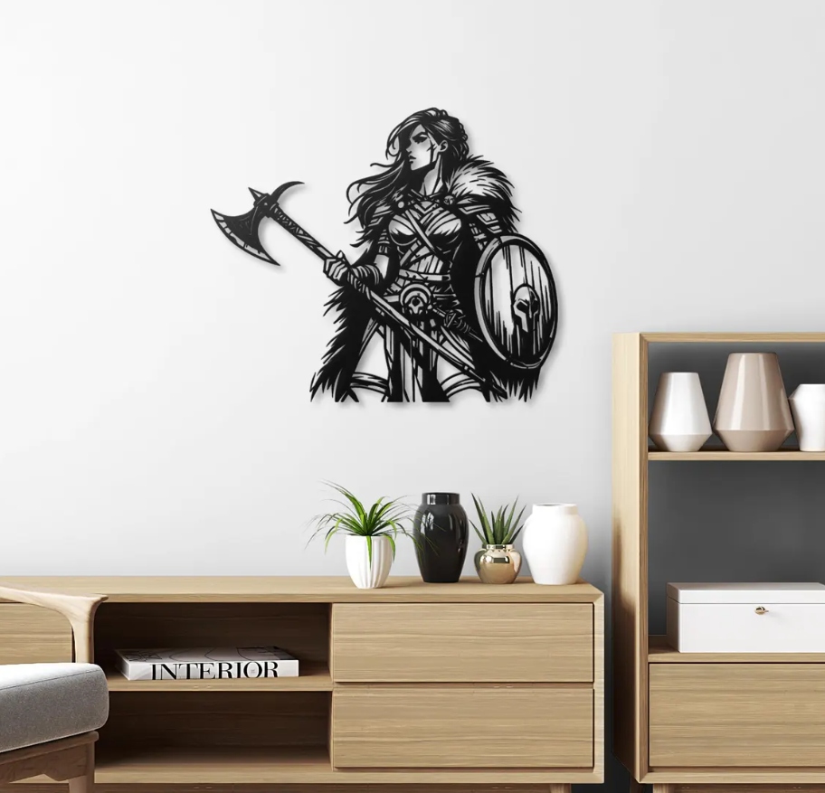 Motyw symbolizuje odwagę, niezależność i wewnętrzną siłę kobiety, łącząc w sobie wojowniczy duch i majestatyczną elegancję. To dekoracja, która wprowadzi do wnętrza atmosferę heroizmu i determinacji, idealna dla osób ceniących sztukę nowoczesną inspirowaną mitologią i legendami.