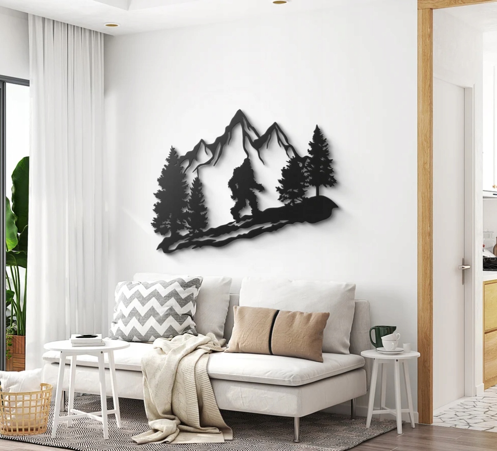 Motyw ten może symbolizować tajemnicę, siłę natury oraz potrzebę kontaktu z dziką, nieujarzmioną przestrzenią. Doskonale sprawdzi się jako ozdoba dla miłośników gór, wędrówek i legend o nieznanym, wprowadzając do wnętrza atmosferę przygody, spokoju i respektu wobec natury.