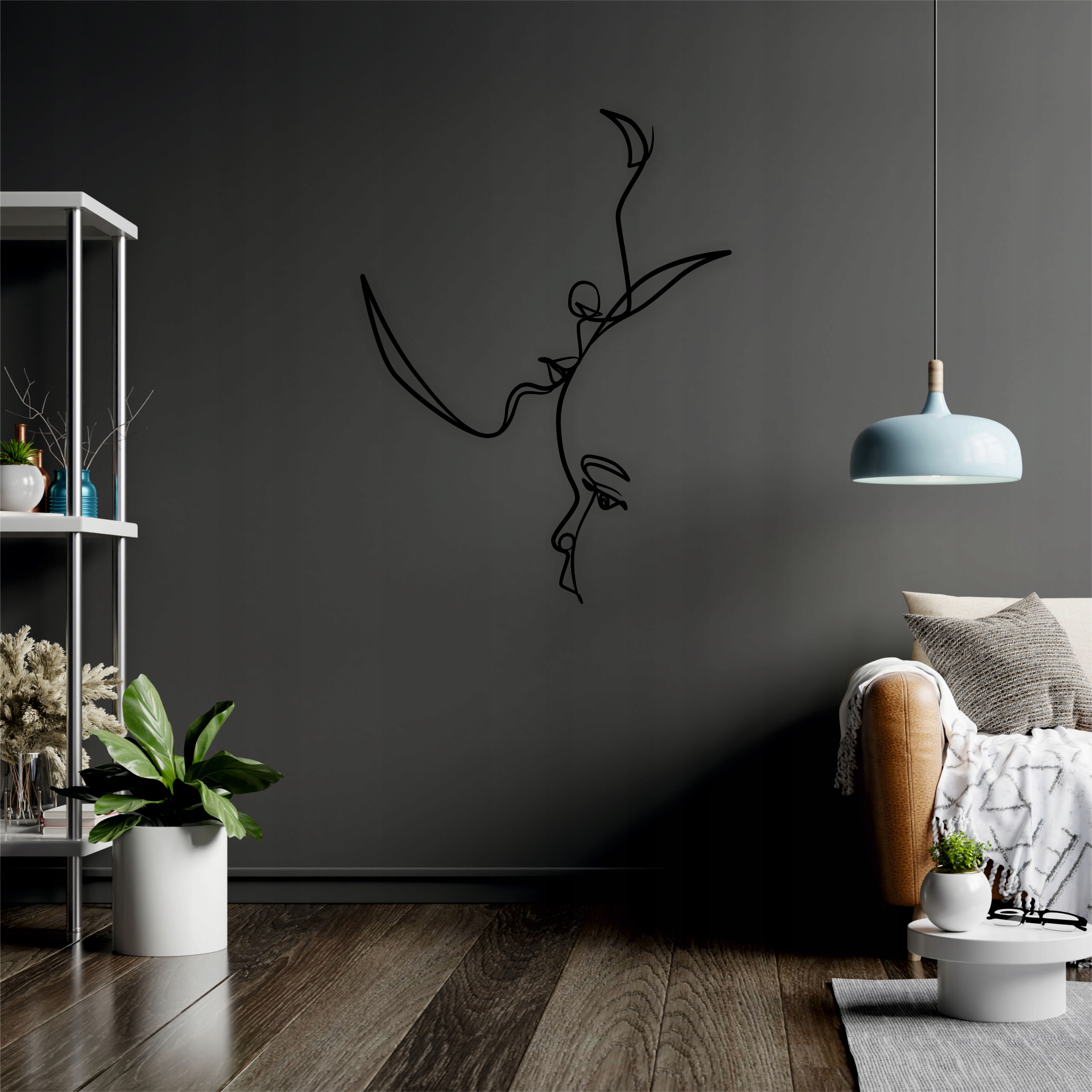 Dekoracja przedstawia abstrakcyjny profil twarzy dziecka wykonany pojedynczą, płynną linią. Kompozycja jest delikatna i minimalistyczna, z charakterystycznymi zawijasami tworzącymi kontury głowy, nosa, ust i pojedynczego oka. Linie układają się w fantazyjne kształty ponad głową, przypominające gałązki, włosy lub swobodnie unoszące się dekoracyjne elementy. Całość sprawia wrażenie lekkości i artystycznej swobody – to nowoczesna, subtelna dekoracja idealna do wnętrz o minimalistycznym lub skandynawskim charakterze.